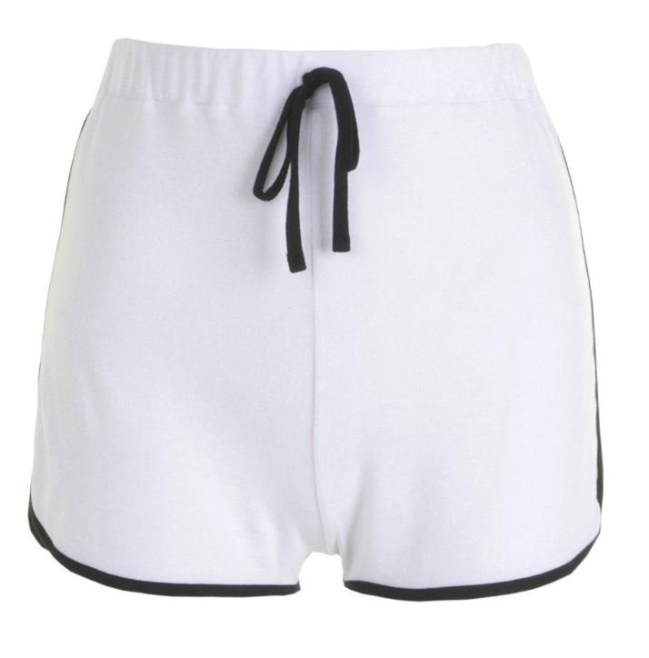 A classic, high-cut runner short featuring a curved dolphin hem and bold contrast binding for a vintage athletic look. Designed for casual comfort and light activity, it targets the mass-market retail and athleisure segments seeking nostalgic sportswear basics with a flattering, short silhouette.