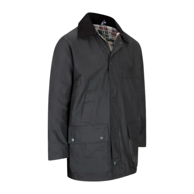 Traditional field jacket crafted from durable waxed cotton for all-weather performance. Features a soft corduroy collar and tartan lining for timeless appeal.