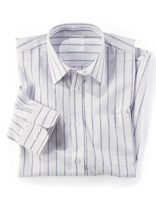 Lightweight linen-cotton blend shirt with a refined stripe pattern, perfect for warmer climates and business casualwear.