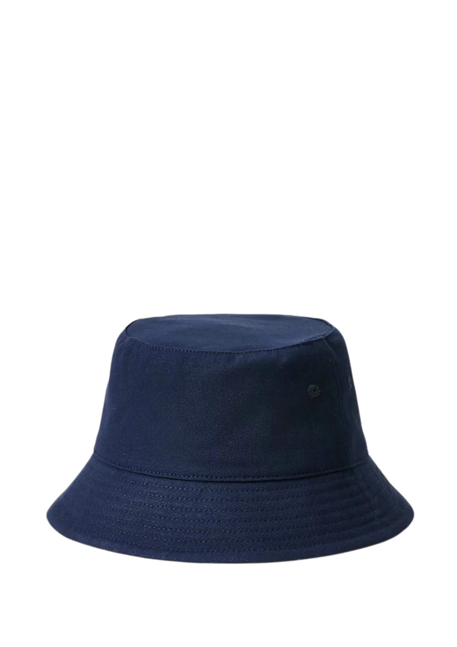 Product OverviewA classic, simple bucket hat in a deep navy blue. The hat features a smooth finish, suggesting a waterproof or water-resistant treatment. The construction includes a round crown and a brim reinforced with multiple parallel stitching lines. The composition (100% Polyester & Cotton) suggests the main shell is polyester for water resistance, backed or lined with cotton for comfort. This accessory is highly functional for outdoor, rainwear, and casual accessories markets.Fabric Composition