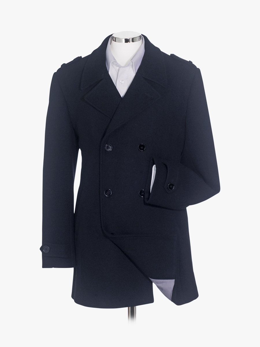 Traditional naval-inspired double-breasted peacoat designed for warmth and timeless style. Suitable for formal and smart-casual collections.